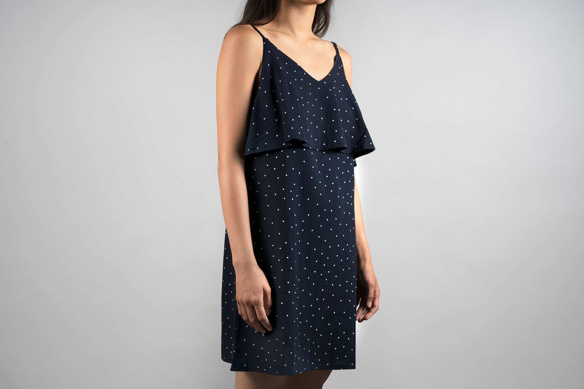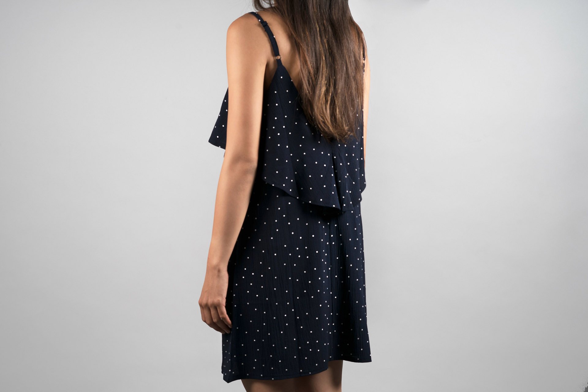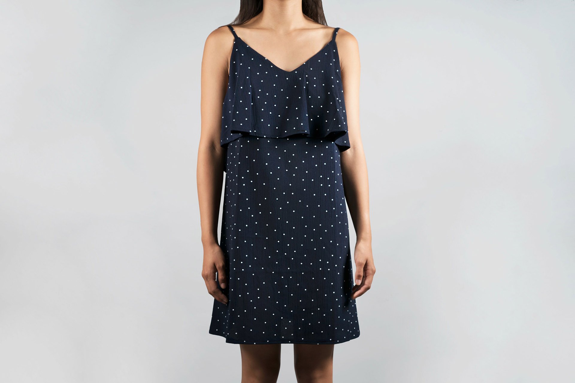 The Navy Polka Dot Dress is a charming and stylish addition to any wardrobe, perfect for a variety of occasions. Crafted from lightweight, breathable fabric, this dress features a classic navy backdrop adorned with playful white polka dots that add a fun, vintage-inspired touch. The flattering silhouette cinches at the waist, enhancing your figure while providing a comfortable fit. With its versatile design, this dress can easily transition from day to night—pair it with sandals for a casual brunch or dress it up with heels and accessories for a night out. Embrace timeless elegance with the Navy Polka Dot Dress, a staple piece that never goes out of style.
